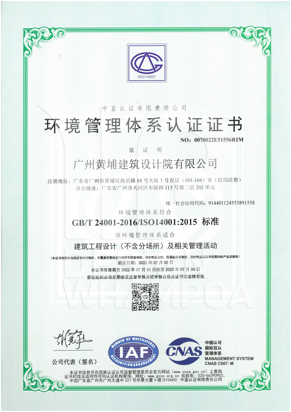 環(huán)境管理體系認(rèn)證證書