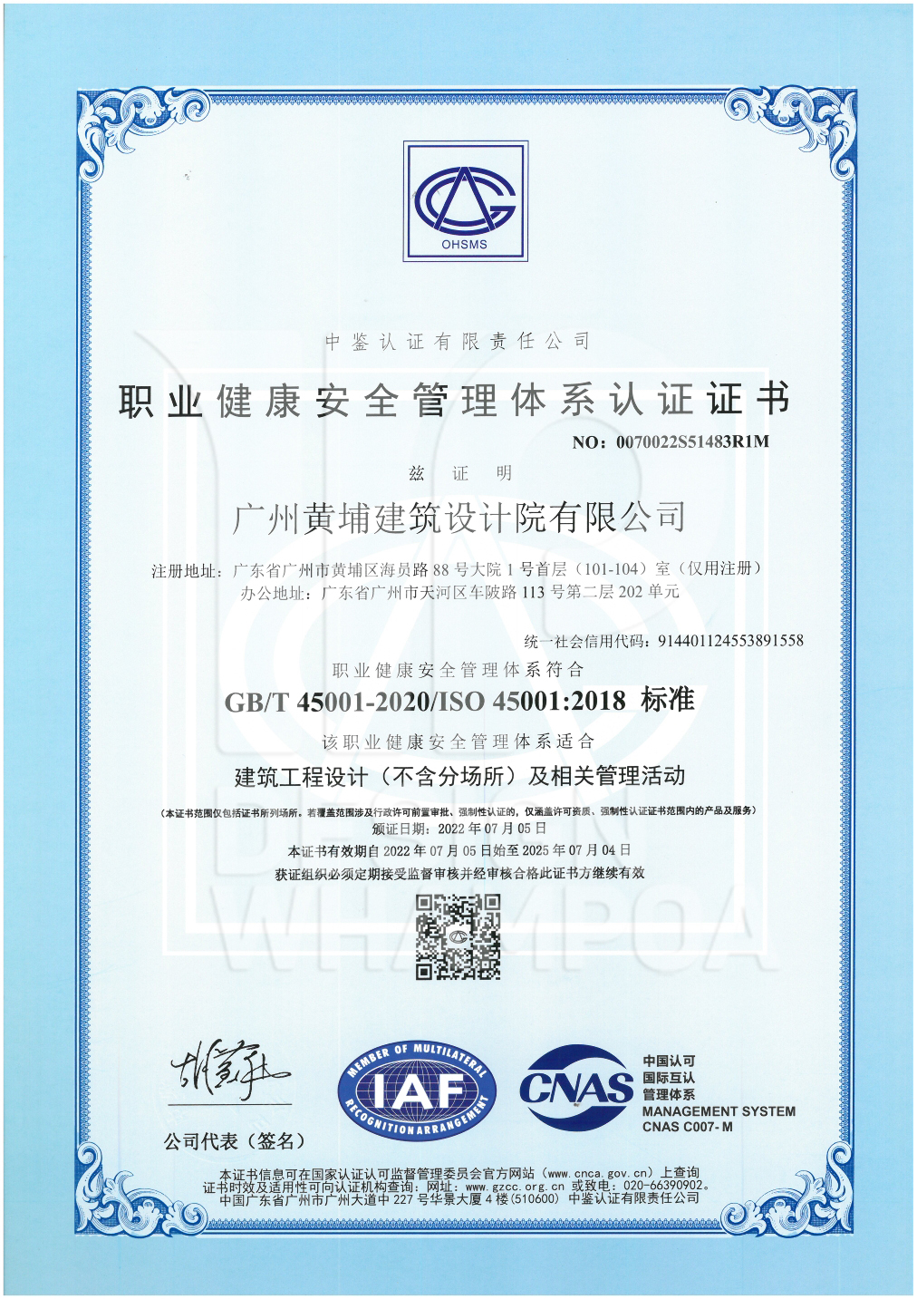 職業(yè)健康安全管理體系認(rèn)證證書