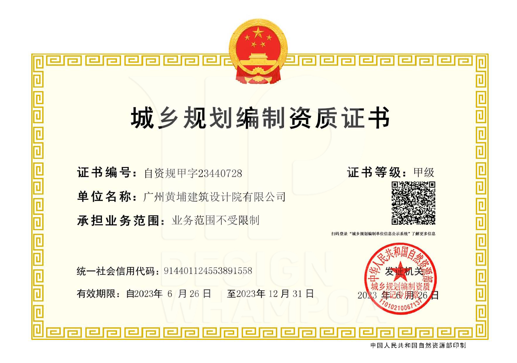 城鄉(xiāng)規(guī)劃編制甲級(jí)
