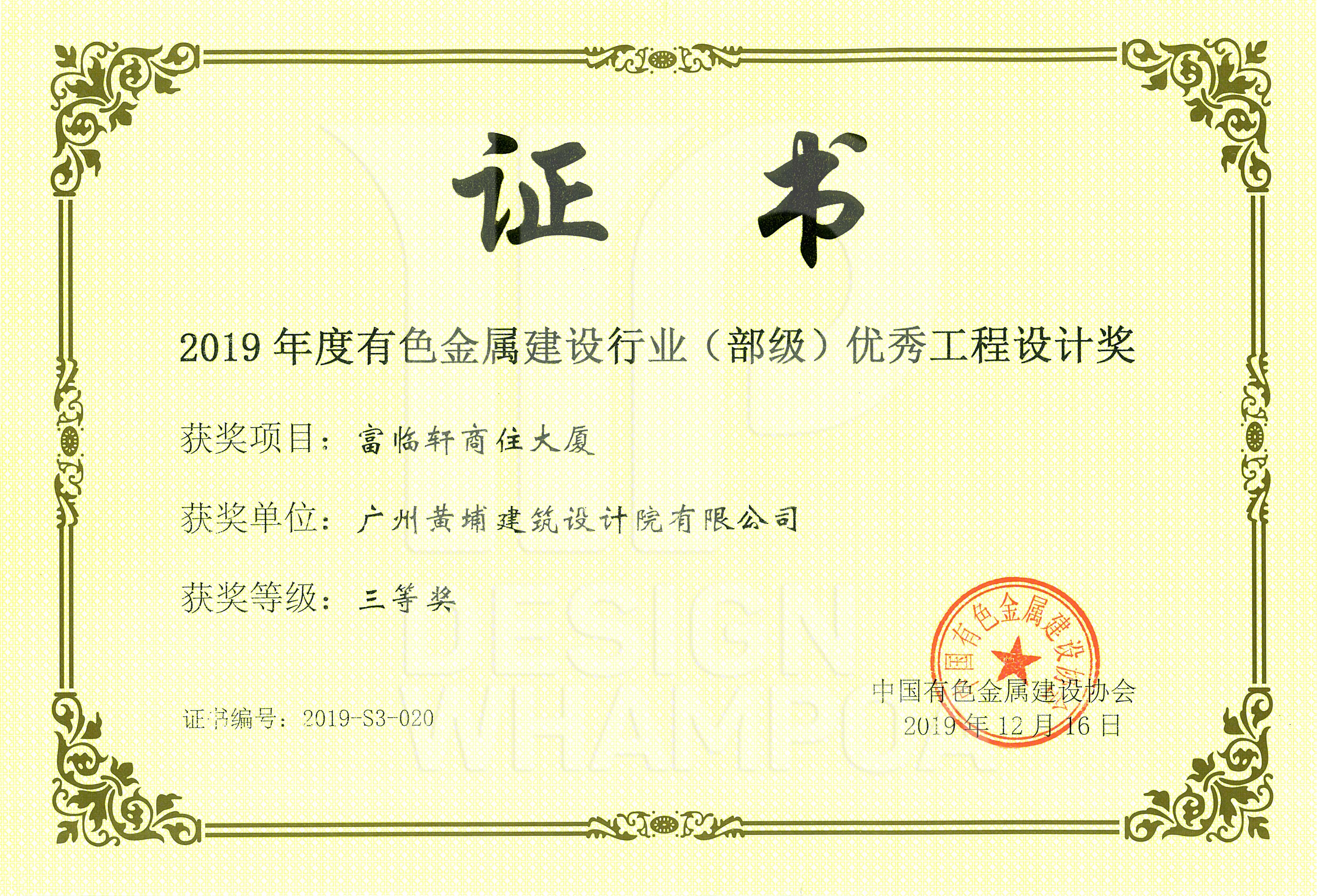 2019年度有色金屬建設(shè)行業(yè)(部級(jí))優(yōu)秀工程設(shè)計(jì)獎(jiǎng)