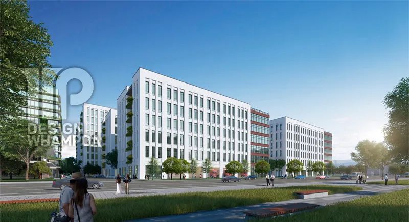廠區(qū)建筑整體以直角形態(tài)表達(dá),并配以生態(tài)的概念,整體感強(qiáng),簡(jiǎn)潔有力,立面挺拔,最大化地體現(xiàn)出現(xiàn)代科技產(chǎn)業(yè)的蓬勃發(fā)展。注重建筑的天際輪廓線,在保證了建筑形體的豐富性和雕塑感后,立面風(fēng)格為簡(jiǎn)潔大方的現(xiàn)代式。
