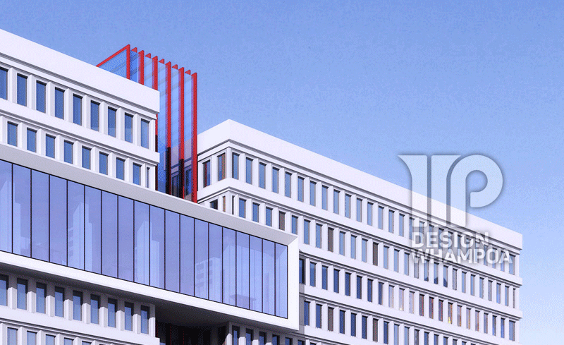 采用經(jīng)典的簡約風格裝飾線條。將立面設計為錯落有致的體塊,豐富了建筑的層次感,使建筑形態(tài)更具美感。配色以紅白為主,突出項目的核心內(nèi)容。