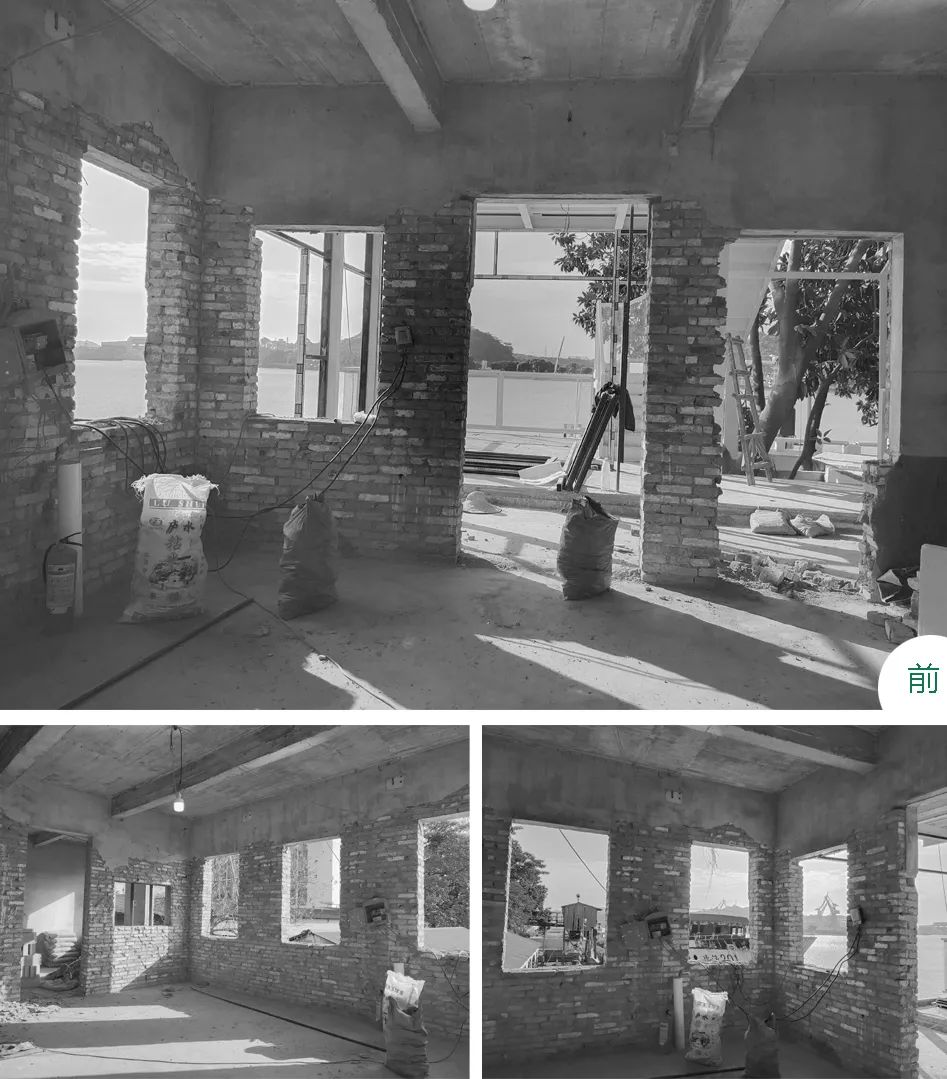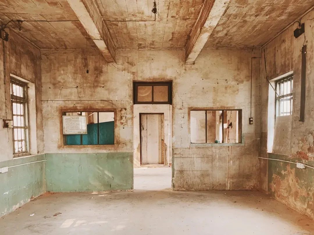 原建筑建于上個(gè)世紀(jì)70-80年代,以磚混結(jié)構(gòu)為主,外立面遭受江風(fēng)吹襲多年,侵蝕嚴(yán)重,木質(zhì)門(mén)窗大多已經(jīng)嚴(yán)重?fù)p毀,內(nèi)部間隔局促且狹小,殘破不堪。但透過(guò)這些斑駁的墻面,以及銹跡斑斑極具年代標(biāo)志的招牌,依然能讓人清晰的感受到曾經(jīng)作為廣州造船基地之一的這片土地上的工業(yè)氣息。