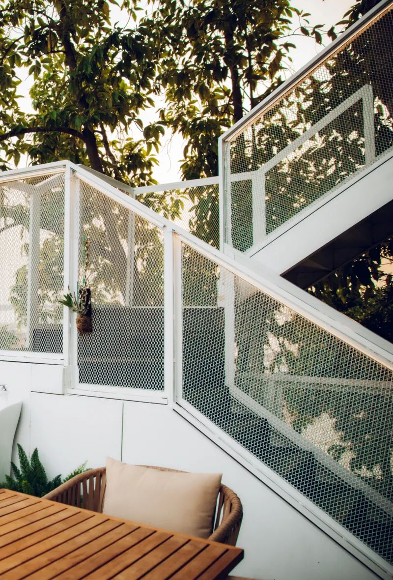 立面上采用大面積的落地窗來(lái)滿足室內(nèi)對(duì)于光線品質(zhì)的需求,擴(kuò)大了豎向的黑色窗框,搭配簡(jiǎn)約的線條,同時(shí),配以純白色鋼制樓梯欄桿和側(cè)網(wǎng),與修舊如舊的墻體形成鮮明的對(duì)比,在工業(yè)遺存的原始粗獷中,點(diǎn)綴了現(xiàn)代建筑的精致感。