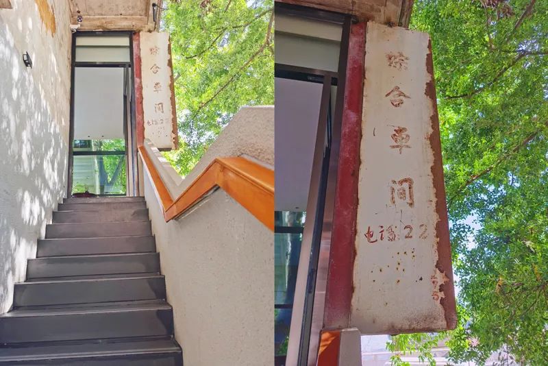 一樓外墻保留了建筑物的部分原狀,其斑駁的年代感,與灰色樓梯擋墻以及銹跡中帶著文藝氣息的招牌,整體形成獨(dú)特的界面韻律和一種跨時(shí)空體驗(yàn),畫(huà)龍點(diǎn)睛的原裝“綜合車間”招牌,使得歷史印記和現(xiàn)代生活交織在一起,又以一種嶄新的姿態(tài)回饋空間的主人,融入整個(gè)黃浦灘園區(qū)和都市。
