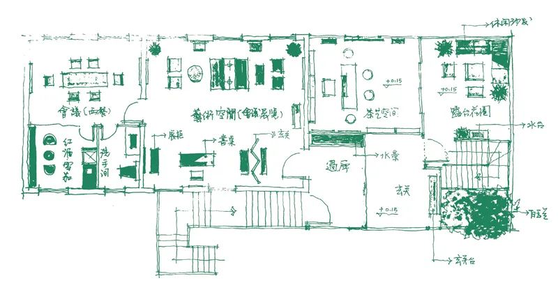 由于工期的限制,改造設(shè)計(jì)工作基本在現(xiàn)場(chǎng)以手繪圖的形式完成。