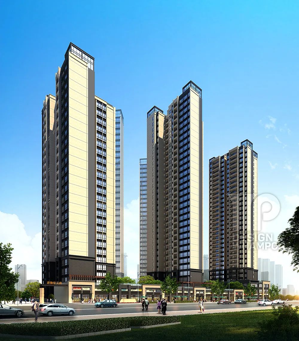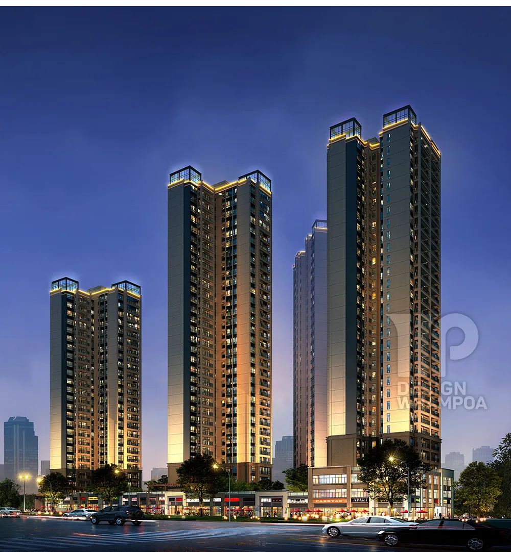 在整體造型上利用體量整體性與景觀滲透的策略,使用現(xiàn)代簡(jiǎn)歐風(fēng)格從簡(jiǎn)單到繁雜、從整體到局部,給人一絲不茍的印象。造型簡(jiǎn)潔明快,彰顯著現(xiàn)代生活節(jié)奏、簡(jiǎn)約和實(shí)用,但又富有時(shí)尚氣息。