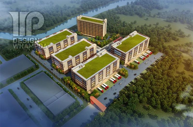 為了實現(xiàn)標準廠房與生產(chǎn)輔助樓空間組合的優(yōu)化,將建筑空間和景觀環(huán)境整合考慮,力求達到人性化、多樣化、經(jīng)濟化的目標。采用低景觀朝向等策略,樹木花草穿插其間,自然優(yōu)美的景觀引入標準廠房與生產(chǎn)輔助樓周邊空間,營造出園區(qū)環(huán)境。