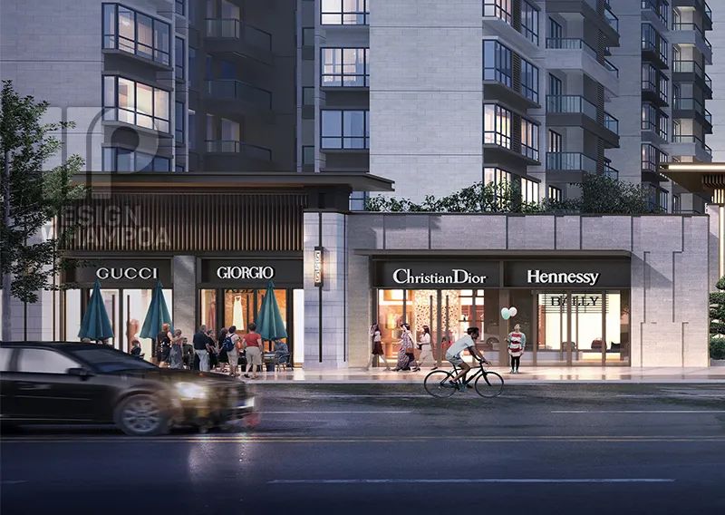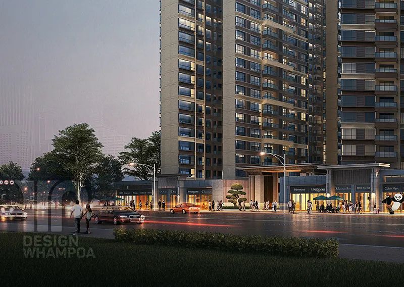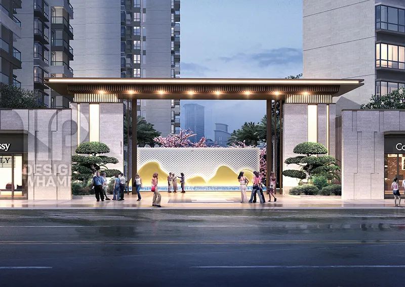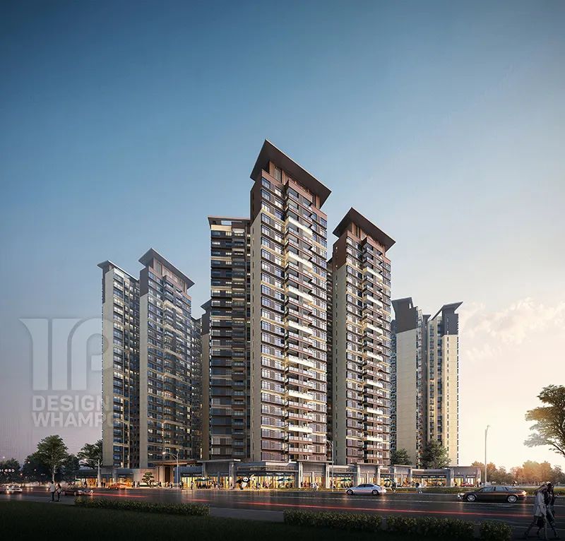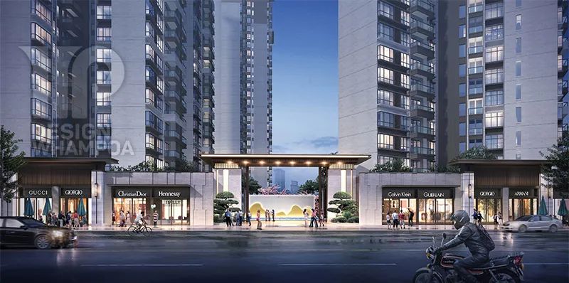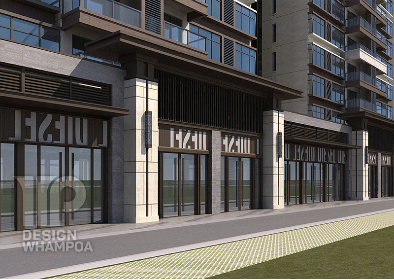立面造型采用新亞洲風格,建筑主色調(diào)為淺黃色石材質(zhì)感搭配棕褐色,汲取新古典建筑之韻味,運用現(xiàn)代建筑設計手法,使小區(qū)整體形象典雅大氣,富有文化韻味,同時不失時尚。