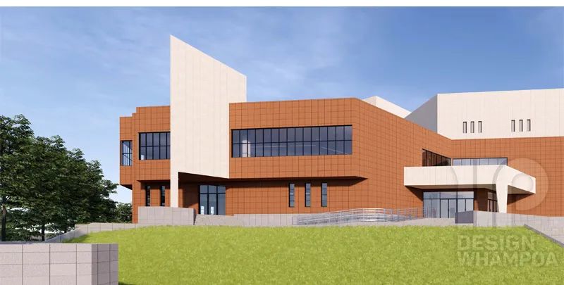 外立面采用了紅色與米色質(zhì)感涂料,黑色鋁合金窗框,高透白玻。簡單大方,干凈通透。